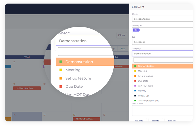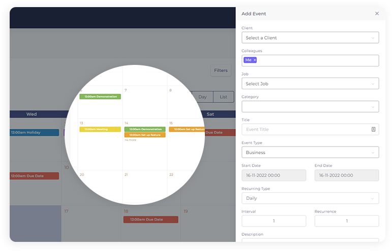 Whether you’re managing your daily, weekly or monthly schedule, you simply have to click on a new job or an existing one, assign your colleagues, and set the timeline.