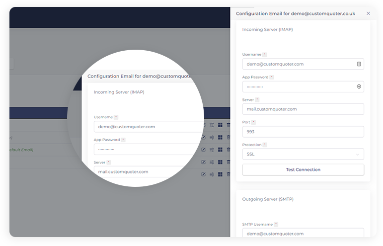 With the SMTP email feature, you can ensure that your emails are actually sent to their target recipients and from your internal email or your colleague’s email account. This means that no more quotes or invoices are going into spam.