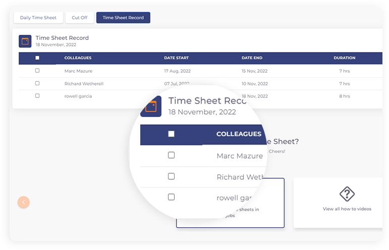 With our time sheet feature, it’s easy to set up automated timekeeping for your team members so that they can monitor how they spend their time.